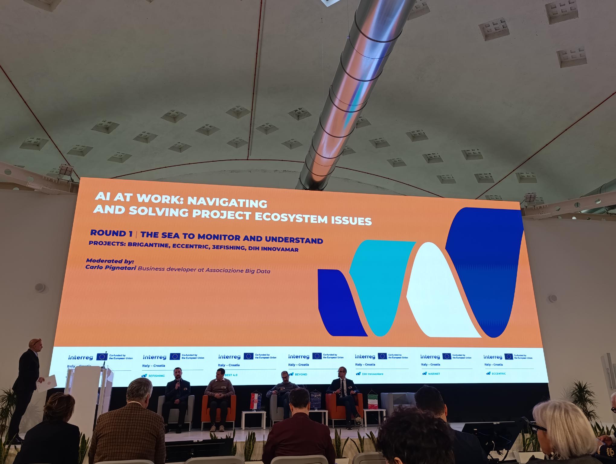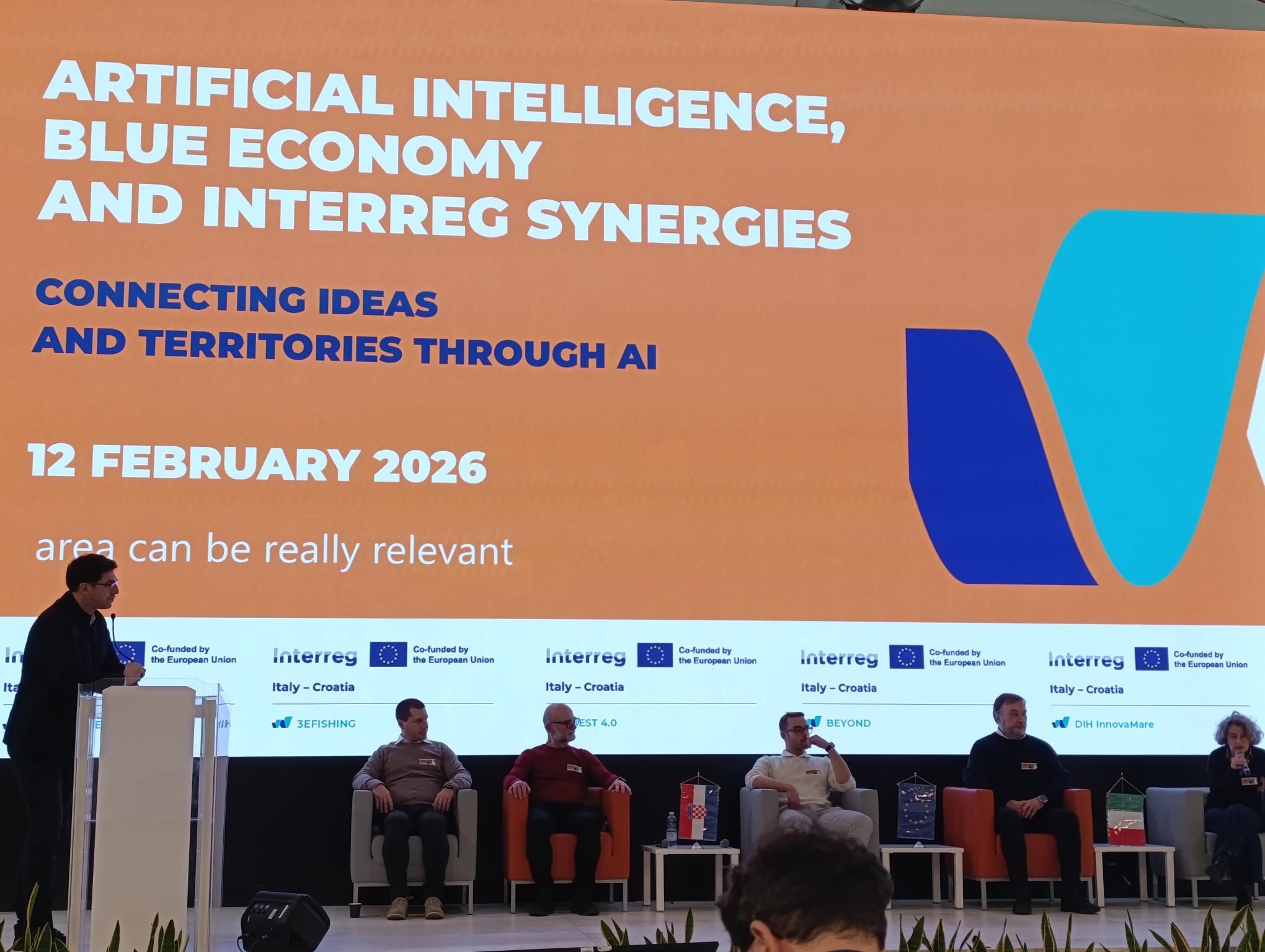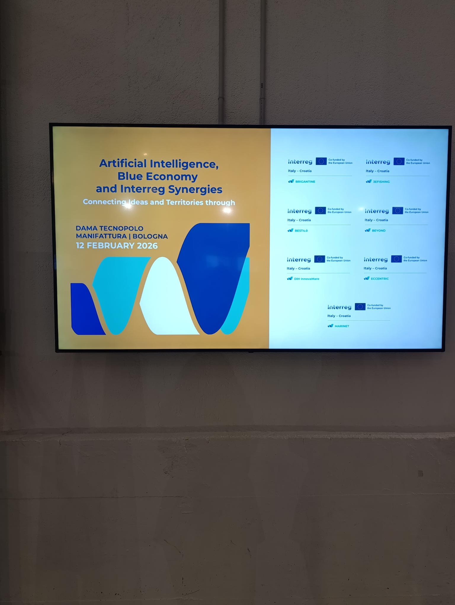 Conference on Artificial Intelligence and Blue Economy in Bologna Published on: Feb 25 2026 DIH InnovaMare project proudly participated in the Conference “Artificial Intelligence, Blue Economy and Interreg Synergies—Connecting Ideas and Territories through AI” held on 12 February 2026 at the Tecnopolo Manifattura in Bologna. Organised by seven projects and with the support of the Interreg Italy-Croatia Programme, the event drew more than 200 participants and 20 speakers from the Blue Economy sector, teaching us about how artificial intelligence can support a more sustainable future for our marine ecosystems. The conference explored the potential of artificial intelligence as a driver for sustainable development in the Blue Economy. Contributions emphasised the strategic role of AI in supporting a more sustainable, resilient, and competitive Adriatic region. They also highlighted the importance of research and knowledge dissemination in addressing the challenges posed by climate change and its economic and territorial impacts. As DIH InnovaMare, we co-organized a joint workshop with the BEYOND and BRIGANTINE projects, including a session on Smart Marine Technologies for the Blue Economy. The discussion, moderated by our Project Manager Mateo Ivanac, focused on how advanced marine and digital technologies are being implemented to support monitoring, protection, and sustainable management of the Adriatic Sea. Five experts took part – Ivan Scagnetto, Riccardo Tumiati, Igor Celić, Neven Cukrov and Michol Ghezzo – their insights highlighted concrete pilot actions and innovative solutions already making an impact in the region. Three of these experts – Mr. Tumiati, Mr. Cukrov and Ms. Ghezzo, also represented our project partners – W&M, IRB and CNR respectively. We are also proud that our AI expert, Jakov Mozetič, participated in the workshop “The Sea to Monitor and Understand,” contributing valuable expertise on the role of artificial intelligence in advancing marine monitoring and knowledge. The conference concluded with a strong signal of shared commitment towards a future in which technology, sustainability, and cross-border cooperation are integrated to promote the sustainable development of the Blue Economy in the Adriatic region. We are eager to continue fostering collaboration, innovation and a more sustainable Blue Economy for the Adriatic Sea. Share this post on: